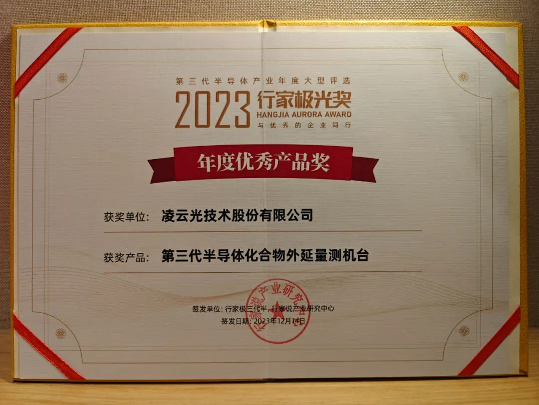 近日,由第三代半導體產業知名媒體與產業研究機構“行家說三代半”主辦的2023行家極光獎頒獎典禮上,凌云光新品“第三代半導體化合物外延量測機臺”榮獲“第三代半導體年度優秀產品獎”。