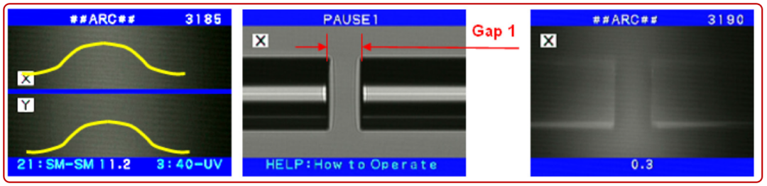 1.測量電弧中心 2.測量光纖端面棱角間隔 3.低功率電弧加熱結束