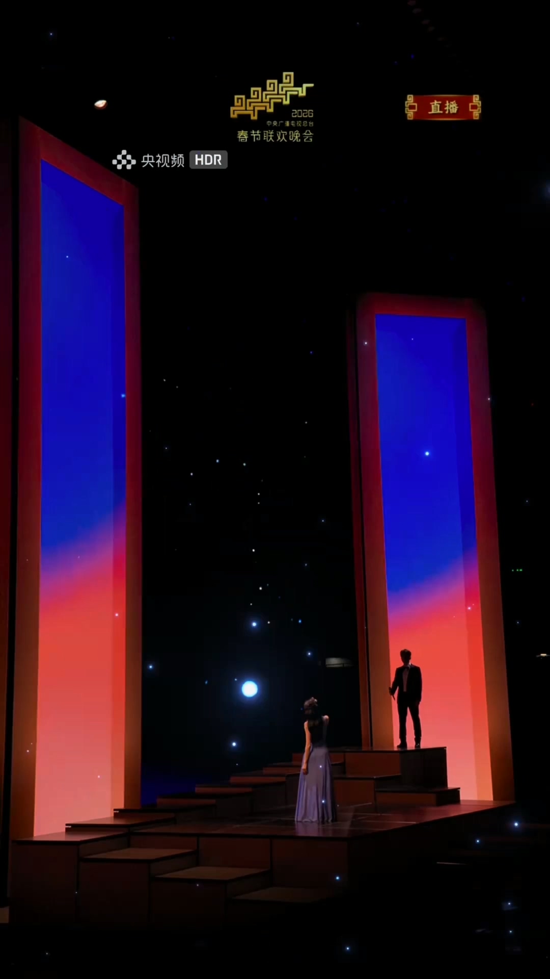 伴隨海來(lái)阿木《夢(mèng)底》中“何其有幸你出現(xiàn)夢(mèng)里,何其不幸你只在夢(mèng)里”的深情吟唱,演員劉浩存與5位高精度數(shù)字分身于舞臺(tái)實(shí)現(xiàn)跨時(shí)空同框共舞。節(jié)目舞美緊扣歌曲情感內(nèi)核,依托XR虛擬制作技術(shù)與光影結(jié)構(gòu)設(shè)計(jì),構(gòu)筑出多層級(jí)空間的“時(shí)空之門”,進(jìn)一步深化“夢(mèng)境與現(xiàn)實(shí)交織”的核心藝術(shù)表達(dá)。