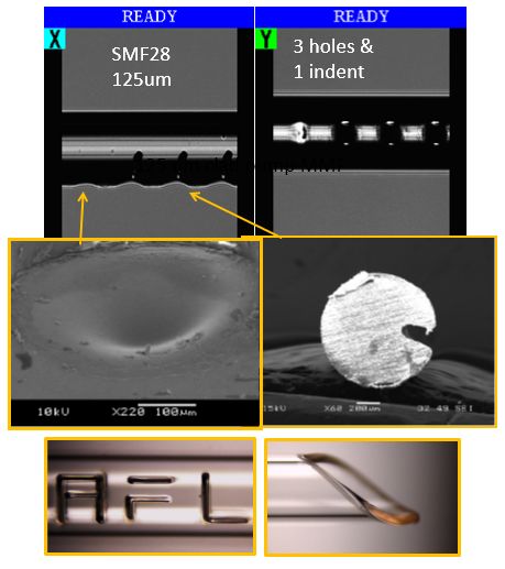 可在光纖或套管上加工曲面, 小孔, 開槽, 字母, 圖形….
