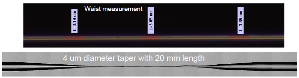 使用SMF28光纖制作了20mm長,4um直徑的光纖錐形