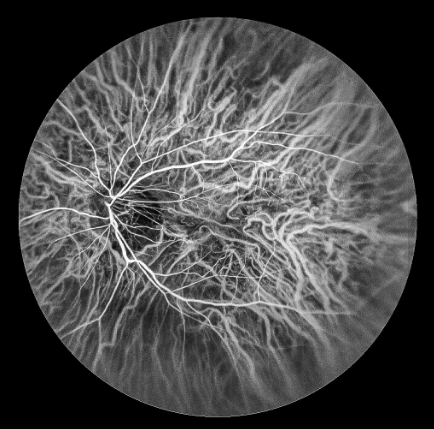 FFA是20世紀(jì)60年代發(fā)展的一項(xiàng)技術(shù)。1961年Navotny 和Alvis首次成功地用膠片記錄到熒光素流經(jīng)視網(wǎng)膜和脈絡(luò)膜血管的動(dòng)態(tài)過程,開創(chuàng)了眼底熒光血管造影的臨床應(yīng)用時(shí)代。如今,F(xiàn)FA主要用于觀察視網(wǎng)膜血管及其血液循環(huán)狀態(tài),高清晰攝像技術(shù)能動(dòng)態(tài)捕捉視網(wǎng)膜毛細(xì)血管的循環(huán)狀態(tài),間斷或連續(xù)采集可形成視網(wǎng)膜靜態(tài)的黑白圖像或動(dòng)態(tài)圖像,在診斷中敏感性強(qiáng),確診率高,能發(fā)現(xiàn)檢眼鏡或眼底照相下不易發(fā)現(xiàn)的視網(wǎng)膜深層微血管瘤,是判斷視網(wǎng)膜病變的“金標(biāo)準(zhǔn)”。
